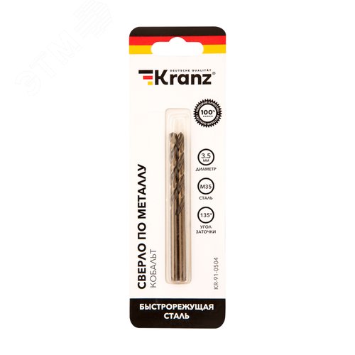 Сверло по металлу 3.5х70х39 мм (сталь HSS-Co 5% M35 P6M5K5) (упак - 2 шт.) DIN 338