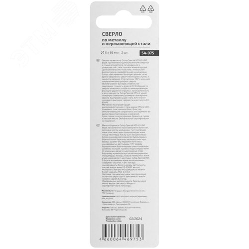 Сверло по металлу Special, HSS-G, 5x86/46 мм, 2 шт.