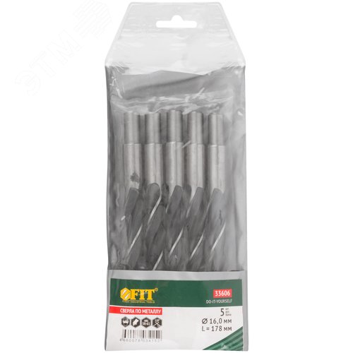 Сверла по металлу HSS черненые 16,0x178 мм (5 шт.)