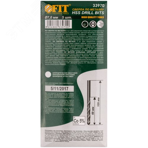 Сверла по металлу HSS с добавкой кобальта 5% Профи 7.0 мм (5 шт)