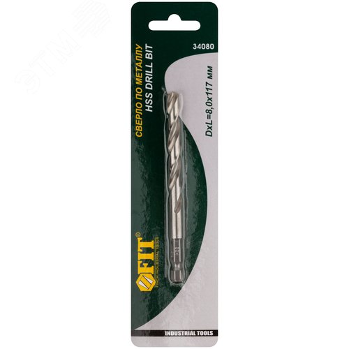 Сверло HSS по металлу,полированное, U-хвостовик под биту, инд.упаковка 8.0 мм