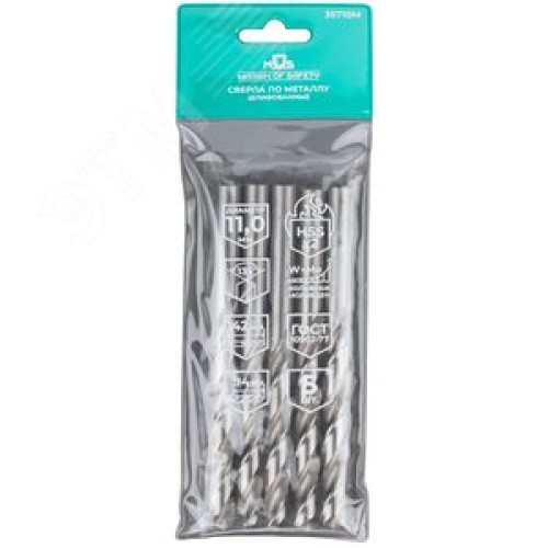 Сверла по металлу HSS шлифованные, угол заточки 135град, 11,0X142 мм (5 шт.)
