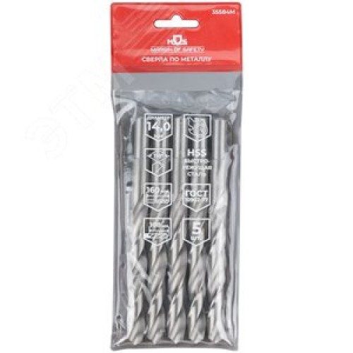 Сверла по металлу HSS, угол заточки 118град, 14,0X160 мм, (5 шт.)