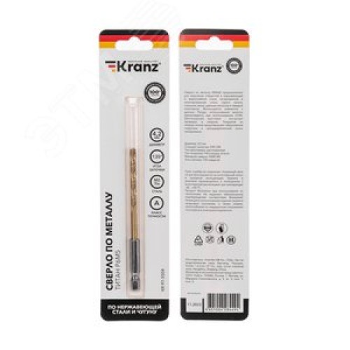 Сверло по металлу, 4,2 мм, Р6М5, ТИТАН, шестигранный хвостовик (1 шт. в упаковке) DIN 338