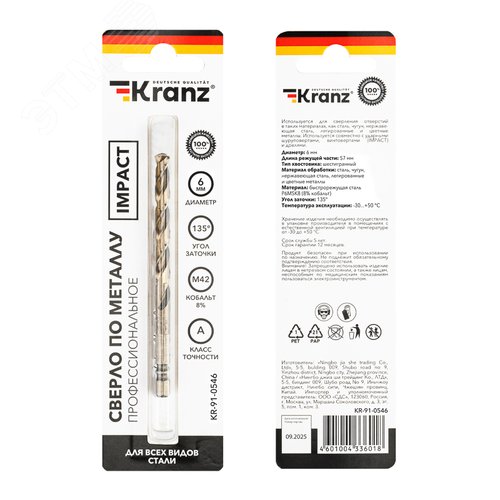 Сверло по металлу 6мм ''Кобальт IMPACT'' P6M5K8 DIN338, шестигранный хвостовик