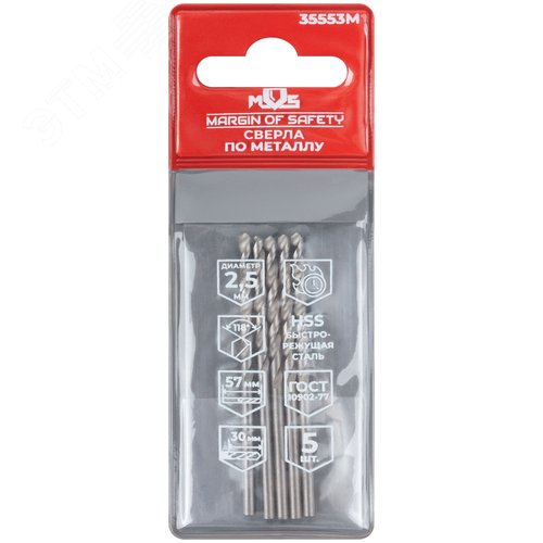 Сверла по металлу HSS, угол заточки 118°, 2,5 x 57 мм, (5 шт.)