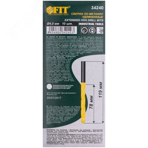 Сверла HSS по металлу, удлиненные, титановое покрытие 4.0х119 мм (10 шт)