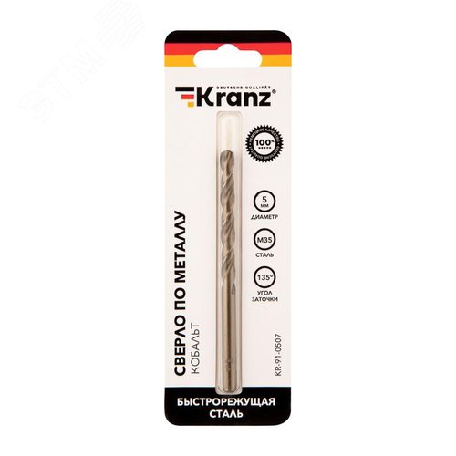 Сверло по металлу 5х86х52 мм (сталь HSS-Co 5% M35 P6M5K5) DIN 338