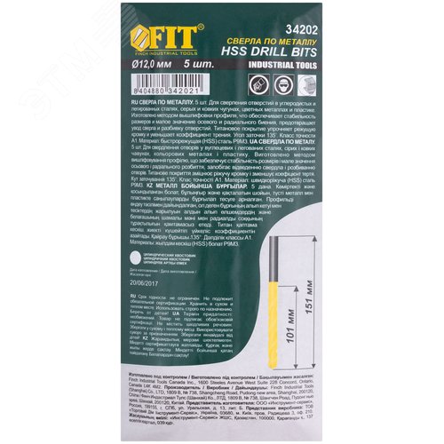 Сверла HSS по металлу, титановое покрытие 12.0 мм (5 шт)