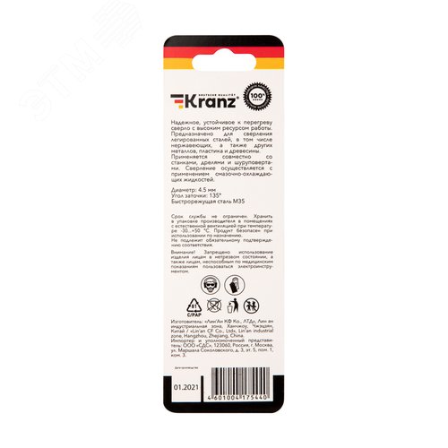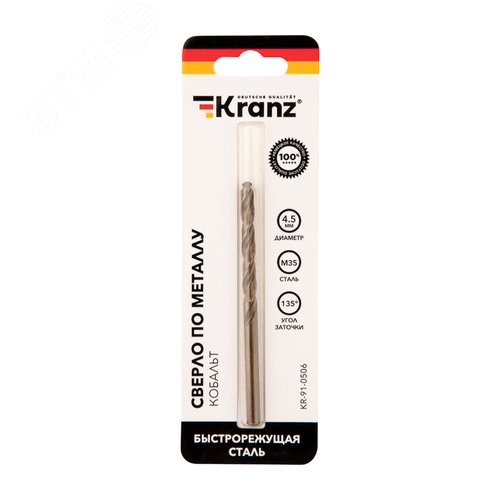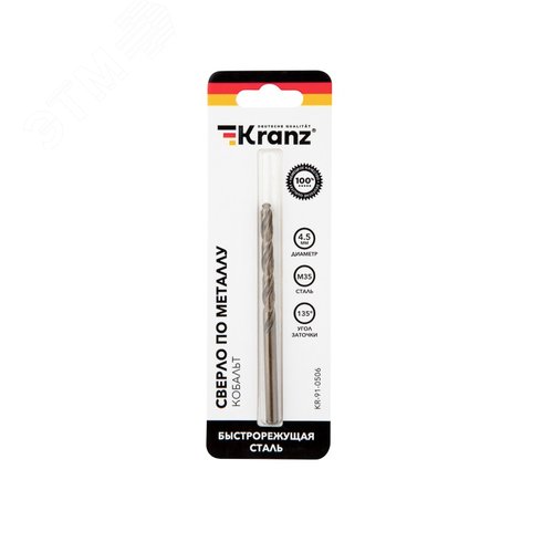 Сверло по металлу 4.5х80х47 мм (сталь HSS-Co 5% M35 P6M5K5) DIN 338