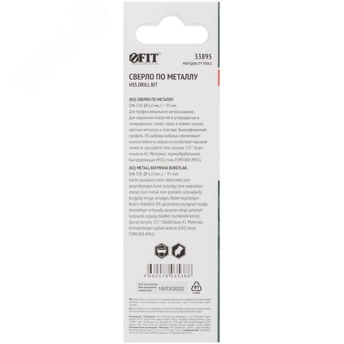Сверла по металлу HSS с добавкой кобальта 8% Профи ( М42 ) в блистере 6.0х93 мм
