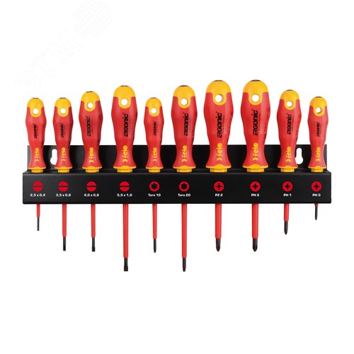 Набор отверток диэлектрических SL/PZ/PH/Tx Ergonic на стальной стойке, 10 шт