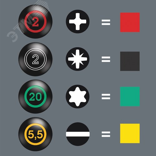 Дополнительная информация С идентификатором инструментов Take it easy цветовая кодировка профиля и маркировка размера. Винты TORX. 5 предметов в картонной коробке. 1 x TX 10x25. 1 x TX 15x25. 1 x TX 20x25. 1 x TX 25x25. 1 x TX 27x25