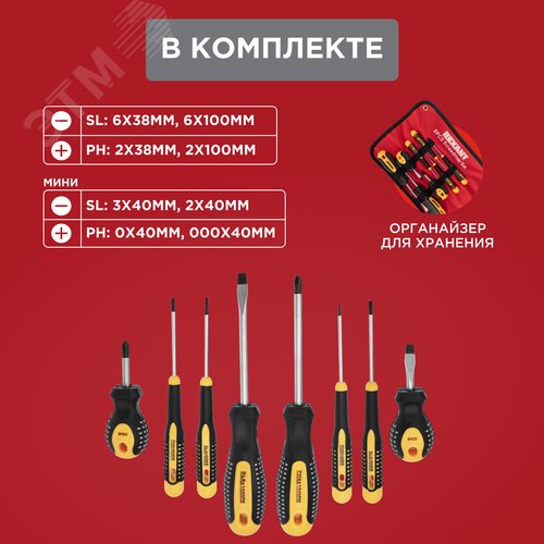 Комплектация отвертки шлицевые SL 6х38, 6х100, 3х40, 2х40 мм