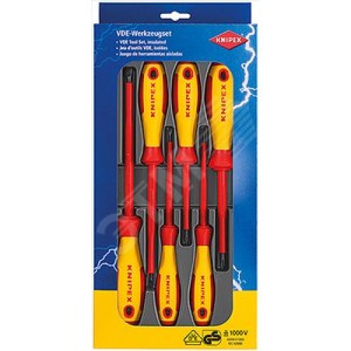 Набор отвёрток VDE 1000V, 6 предметов, комлектация: 9820xx SL3/4/5.5/6.5 шлицевые, PH1/2 крестовые, диэлектрические,