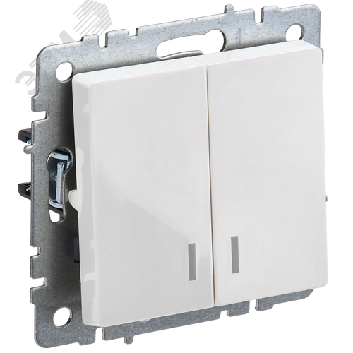 BRITE Выключатель 2-клавишный с индикацией 10А безвинтовое крепление ВС11-2-1-БрБ белый IEK