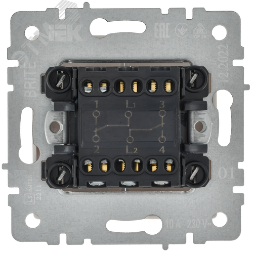 BRITE Выключатель 2-клавишный проходной 10А ВС10-2-6-БрБ белый