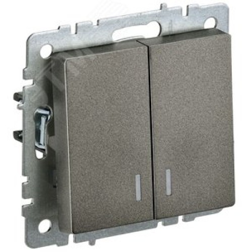 BRITE Выключатель двухклавишный с индикацией 10А ВС10-2-1-БрТБ темная бронза