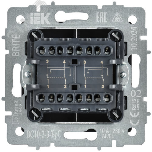BRITE Выключатель 2-клавишный перекрестный 10А ВС10-2-3-БрС сталь IEK