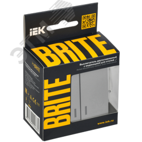 BRITE Выключатель 2-клавишный с индикацией для отелей 10А ВС10-2-9-БрА алюминий IEK
