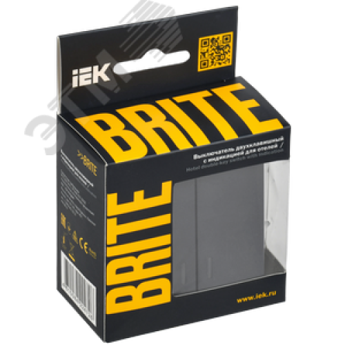 BRITE Выключатель 2-клавишный с индикацией для отелей 10А ВС10-2-9-БрГ графит IEK