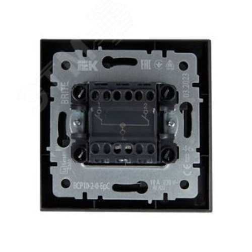 BRITE Выключатель двухклавишный 10А в сборе ВСР10-2-0-БрС сталь IEK