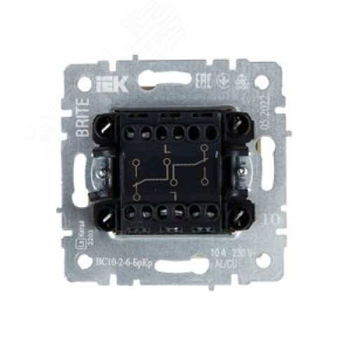 BRITE Выключатель двухклавишный проходной 10А ВС10-2-6-БрКр бежевый