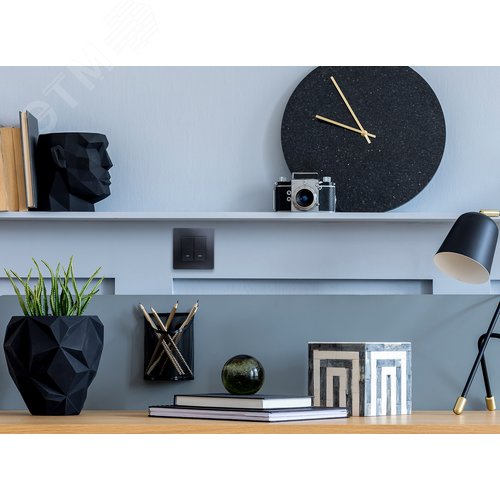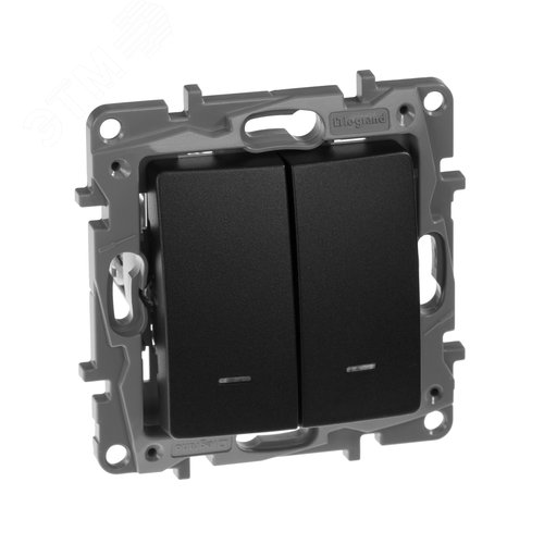 Выключатель 2-клавишный с подсветкой/индикацией 10А безвинтовое крепление антрацит ETIKA