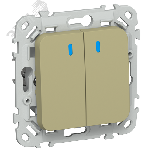 FLITE Выключатель 2-клавишный проходной с индикацией 10А ВС62-1-1-ФлО оливковый IEK