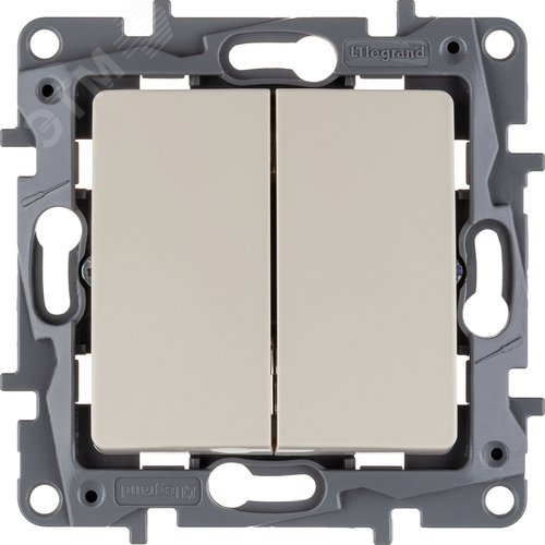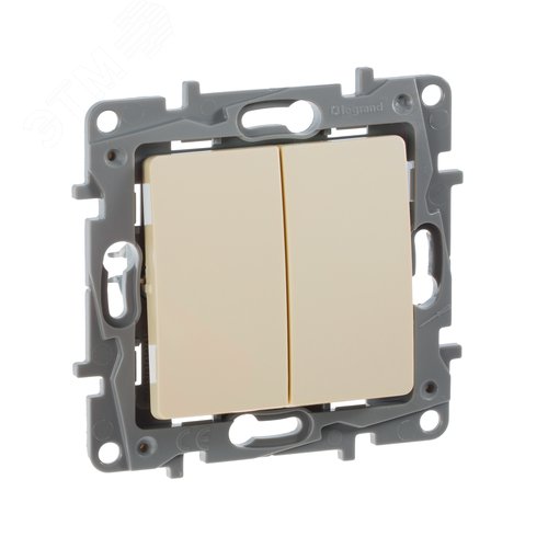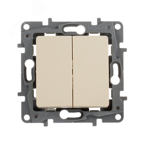 Выключатель 2-клавишный 10А безвинтовое крепление слоновая кость ETIKA