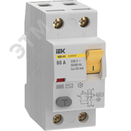 Выключатель дифференциальный (УЗО) KARAT ВД3-63 2P 80А 30мА 6кА тип AC
