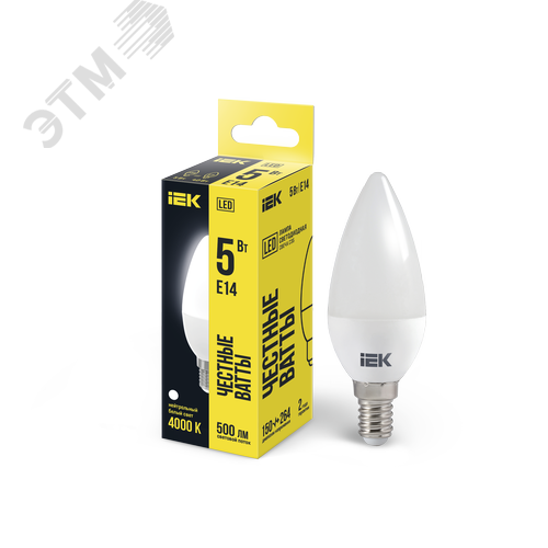 Лампа светодиодная C35 свеча 5Вт 230В 4000К E14