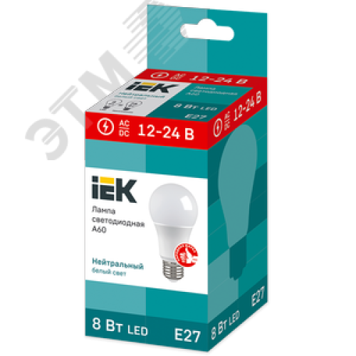 Лампа светодиодная A60 груша 8Вт 12-24В 4000К E27
