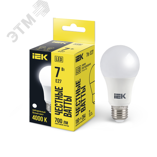 Лампа светодиодная A60 груша 7Вт 230В 4000К E27