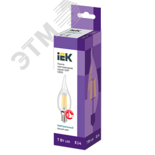 Лампа светодиодная CВ35 свеча на ветру прозрачная 7Вт 230В 4000К E14 серия 360 град