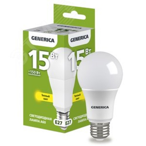 Лампа светодиодная A60 груша 15Вт 230В 3000К E27 GENERICA