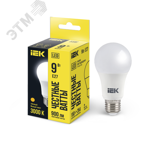 Лампа светодиодная A60 груша 9Вт 230В 3000К E27