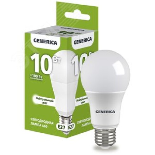 Лампа светодиодная A60 груша 10Вт 230В 4000К E27 GENERICA