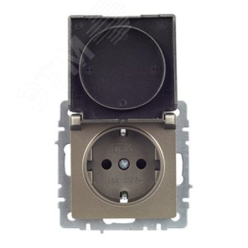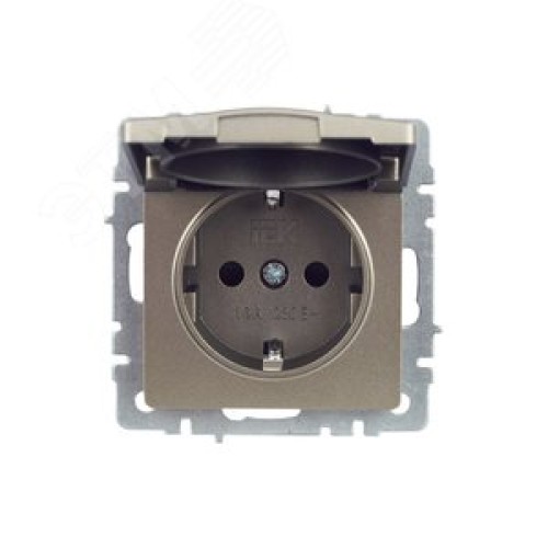 BRITE Розетка с заземлением с защитными шторками и крышкой 16А IP44 РСбш10-3-44-БрШ шампань