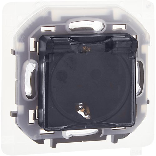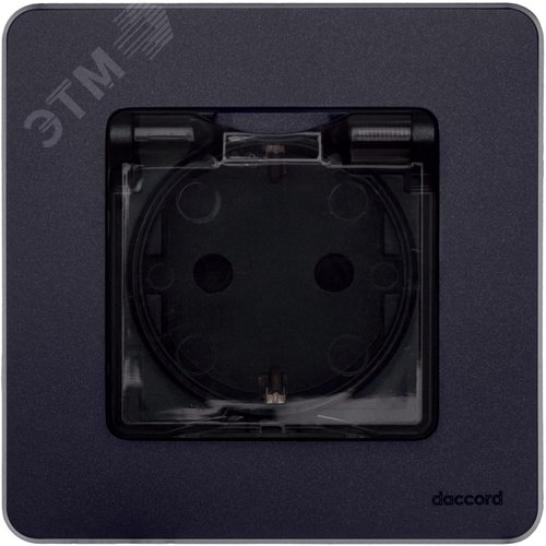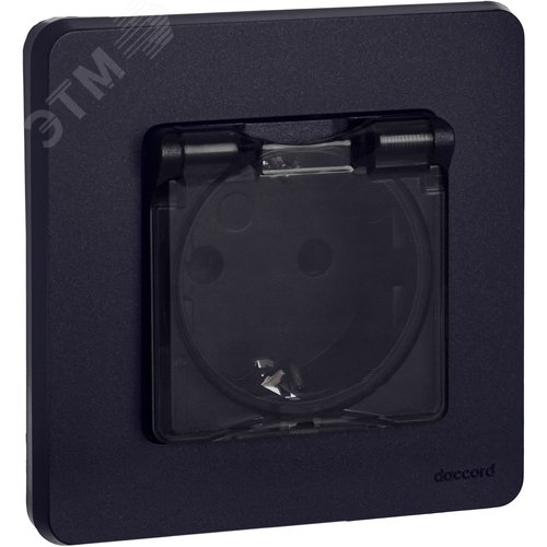 Розетка 1-местная с заземлением с защитными шторками и крышкой 16А IP44 антрацит INSPIRIA