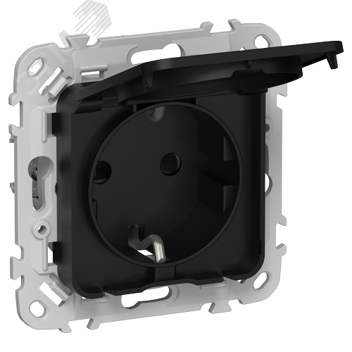 FLITE Розетка с заземлением с защитными шторками и крышкой 16А IP44 РСшкр11-0-44-ФлЧ черный IEK