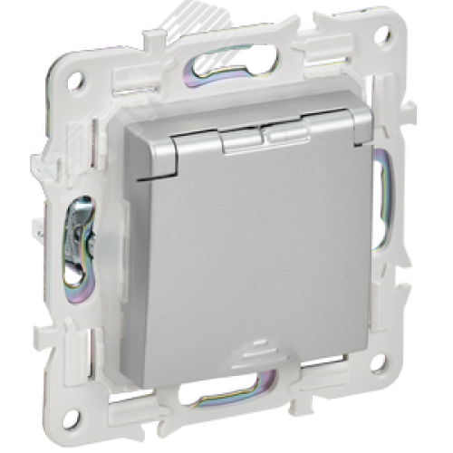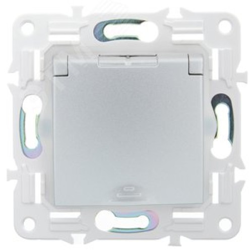 SKANDY Розетка 1-местная с заземлением с защитными шторками и крышкой 16А IP44 SK-R11S серебряный IEK