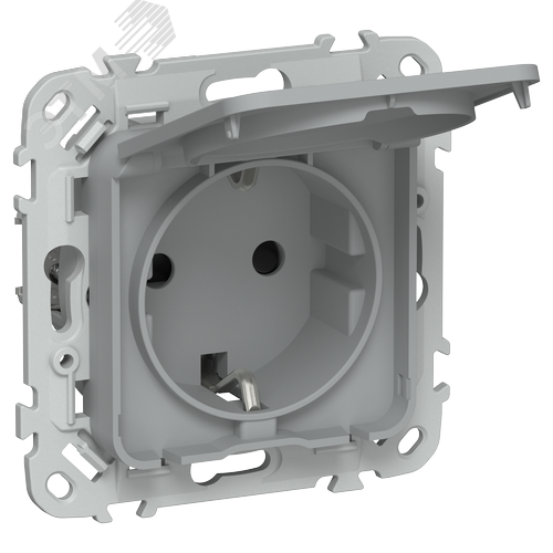 FLITE Розетка с заземлением с защитными шторками и крышкой безвинтовое крепление 16А IP44 РСшкр11-1-44-ФлС серый IEK