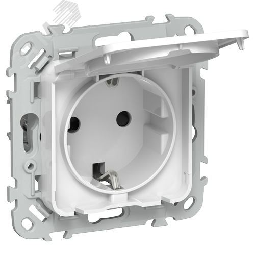 FLITE Розетка с заземлением с защитными шторками и крышкой безвинтовое крепление 16А IP44 РСшкр11-1-44-ФлБ белый IEK