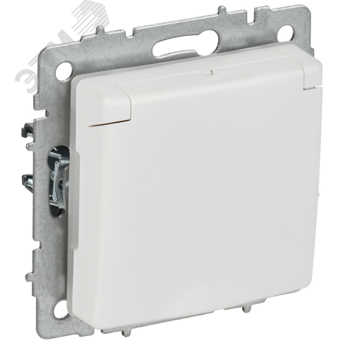 BRITE Розетка 1-местная с заземлением с защитными шторками и крышкой 16А IP44 РСбш10-3-44-БрАБ арктический белый IEK