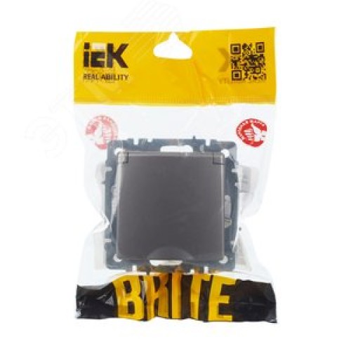 BRITE Розетка с заземлением с защитными шторками и крышкой 16А IP44 РСбш10-3-44-БрС сталь