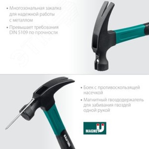Столярный молоток-гвоздодёр Fiberglass 560 г