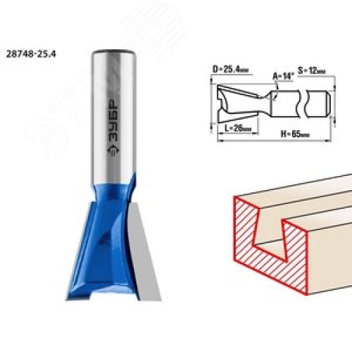 Фреза пазовая фасонная ''Ласточкин Хвост'' 25.4x26мм, угол 14град.
