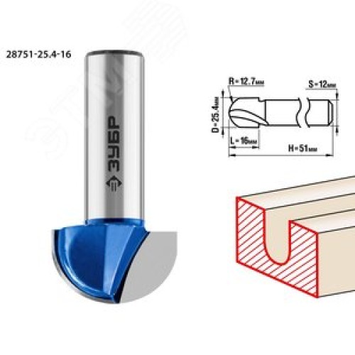 Фреза пазовая галтельная 25.4x16мм, радиус 12.7мм