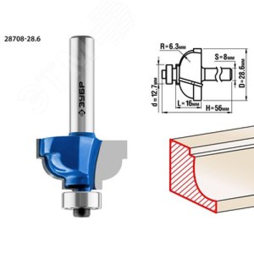 Фреза кромочная калевочная №7 28,6x16мм, радиус 6.3мм